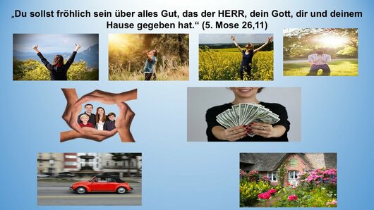 „Du sollst fröhlich sein über alles Gut, das der HERR, dein Gott, dir und deinem Hause gegeben hat.“ (5. Mose 26,11)